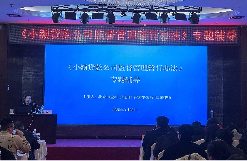 春潮涌动,向“新”而行。为帮助我区小额贷款公司更好地运用政策,2月28日,由自治区党委金融办(地方金融管理局)主办,宁夏小额贷款同业协会协办的《小额贷款公司监督管理暂行办法》(下称《办法》)专题辅导班在银川召开。北京市盈科(银川)律师事务所耿超律师主讲,自治区党委金融办管理一处,银川市委金融办,石嘴山市、吴忠市、固原市、中卫市财政局以及各县(市、区)财政部门、全区各小额贷款公司等共计100余人参加。